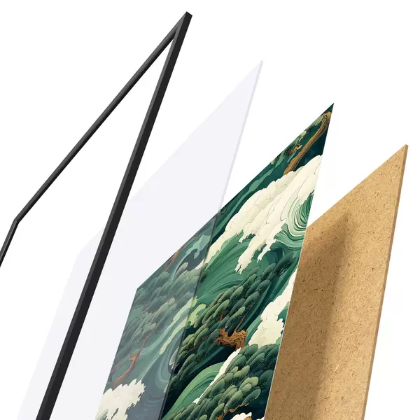 Plakatą sudaro rėmas, pleksiklas, atspausdintas vaizdas ir medžio drožlių plokštės pagrindas. Plakatą galima iš karto pakabinti ant sienos dėl kitoje pusėje esančių laikiklių.