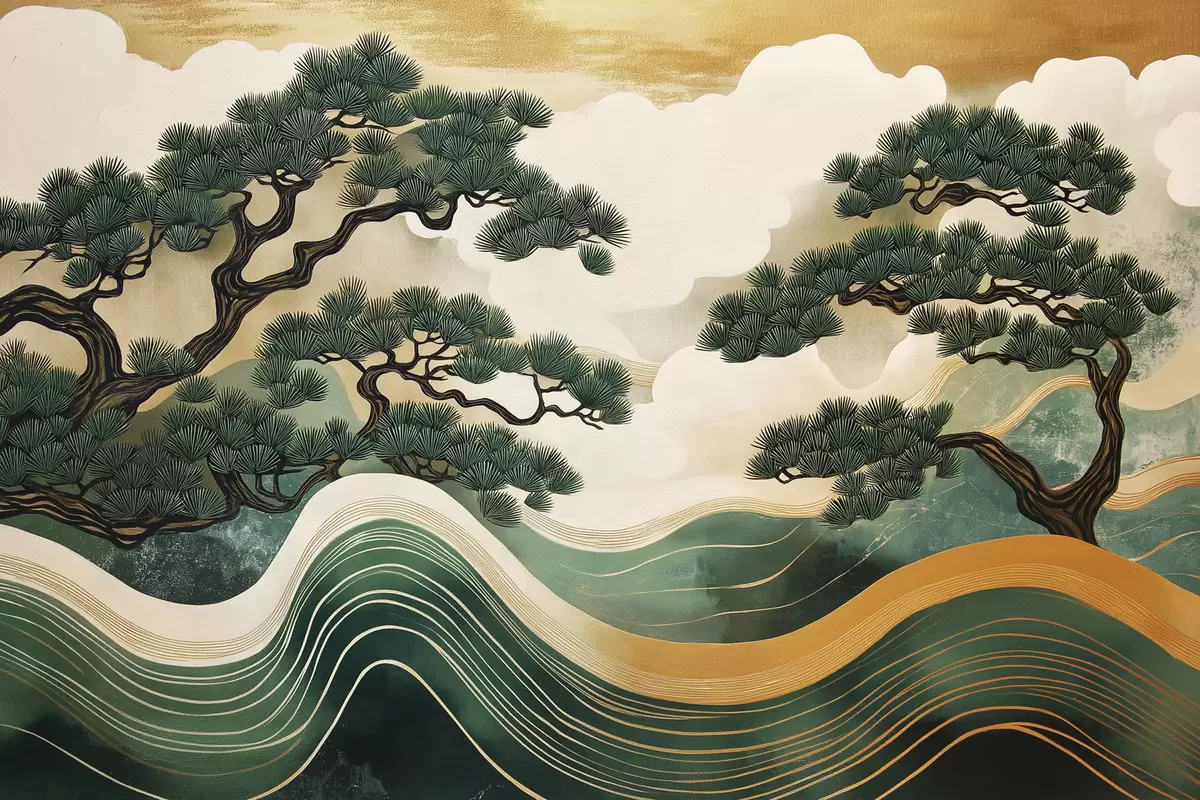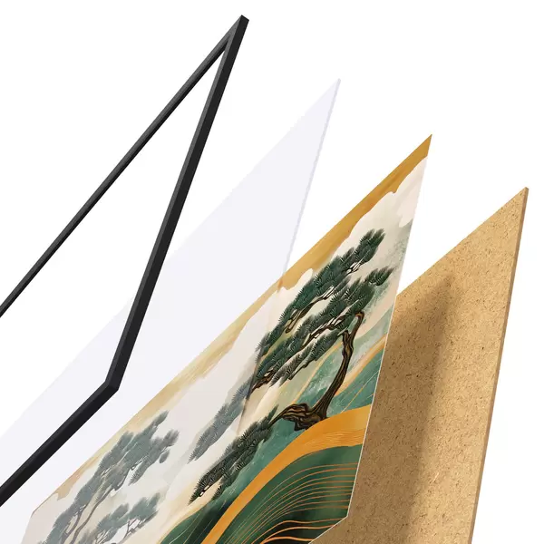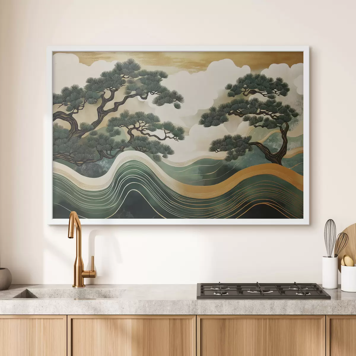 Plakatas Abstraktūs peizažai su pušimis, kinų stilius f44720