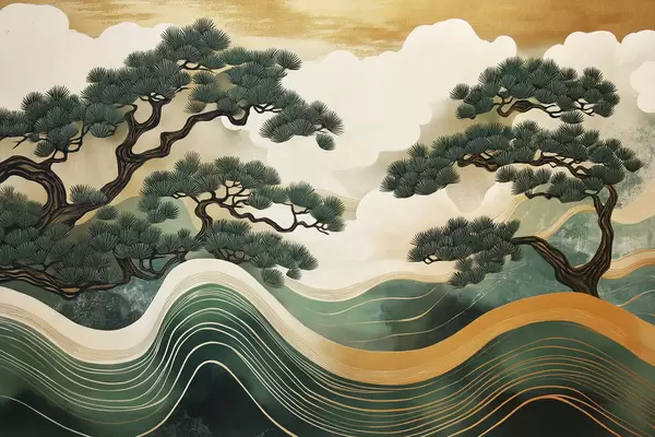 Plakatas Abstraktūs peizažai su pušimis, kinų stilius f44720