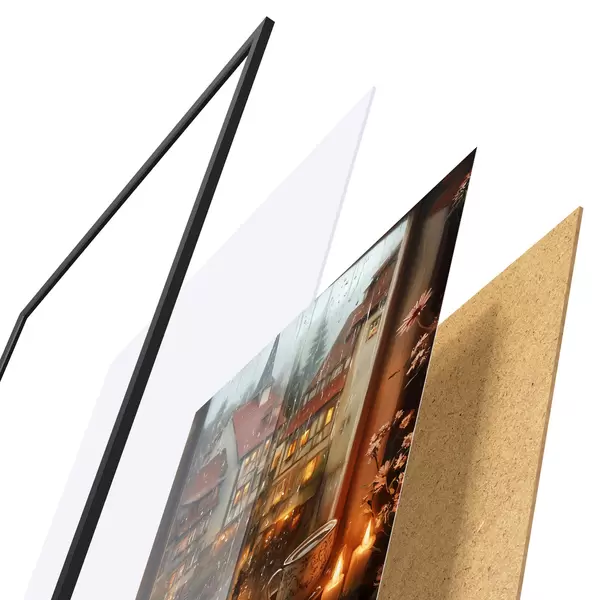 Plakatą sudaro rėmas, pleksiklas, atspausdintas vaizdas ir medžio drožlių plokštės pagrindas. Plakatą galima iš karto pakabinti ant sienos dėl kitoje pusėje esančių laikiklių.