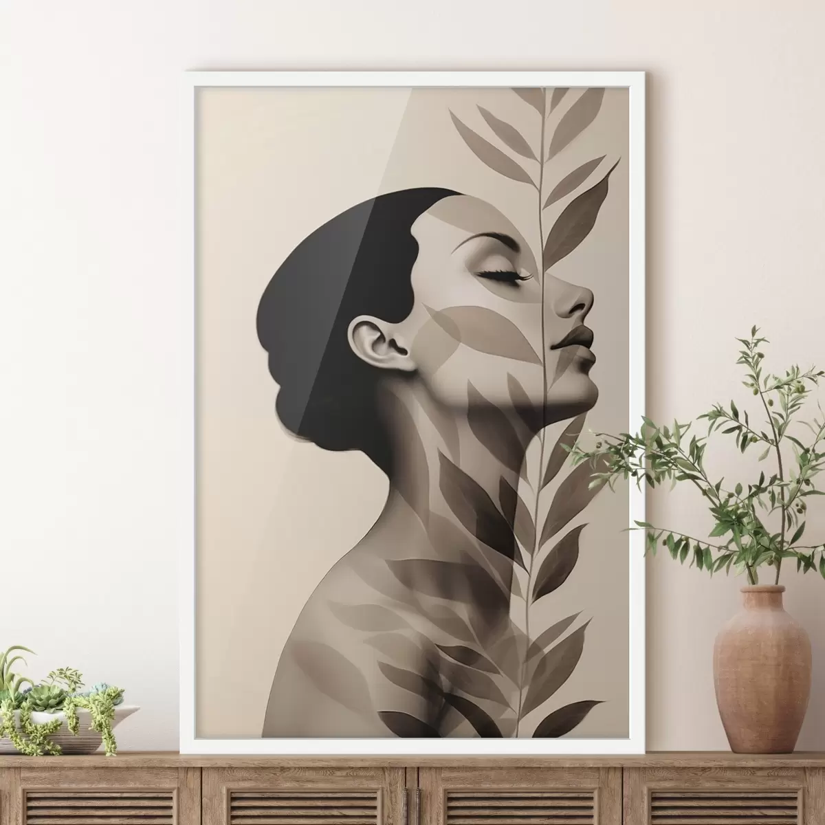 Plakatas Moters profilis su gėlių raštu Ne f44725