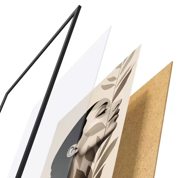 Plakatą sudaro rėmas, pleksiklas, atspausdintas vaizdas ir medžio drožlių plokštės pagrindas. Plakatą galima iš karto pakabinti ant sienos dėl kitoje pusėje esančių laikiklių.
