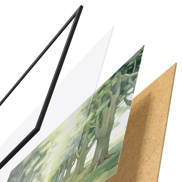 Plakatą sudaro rėmas, pleksiklas, atspausdintas vaizdas ir medžio drožlių plokštės pagrindas. Plakatą galima iš karto pakabinti ant sienos dėl kitoje pusėje esančių laikiklių.