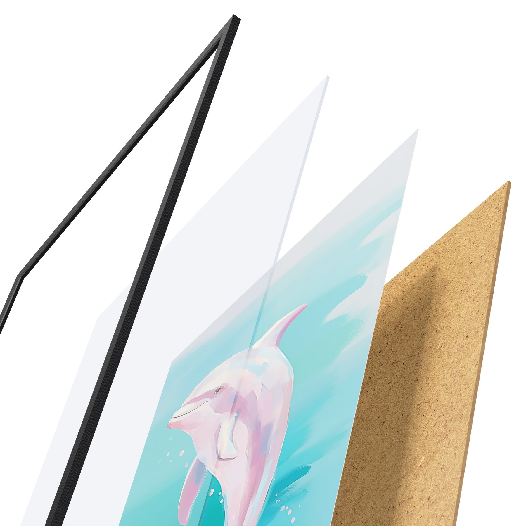 Plakatą sudaro rėmas, pleksiklas, atspausdintas vaizdas ir medžio drožlių plokštės pagrindas. Plakatą galima iš karto pakabinti ant sienos dėl kitoje pusėje esančių laikiklių.