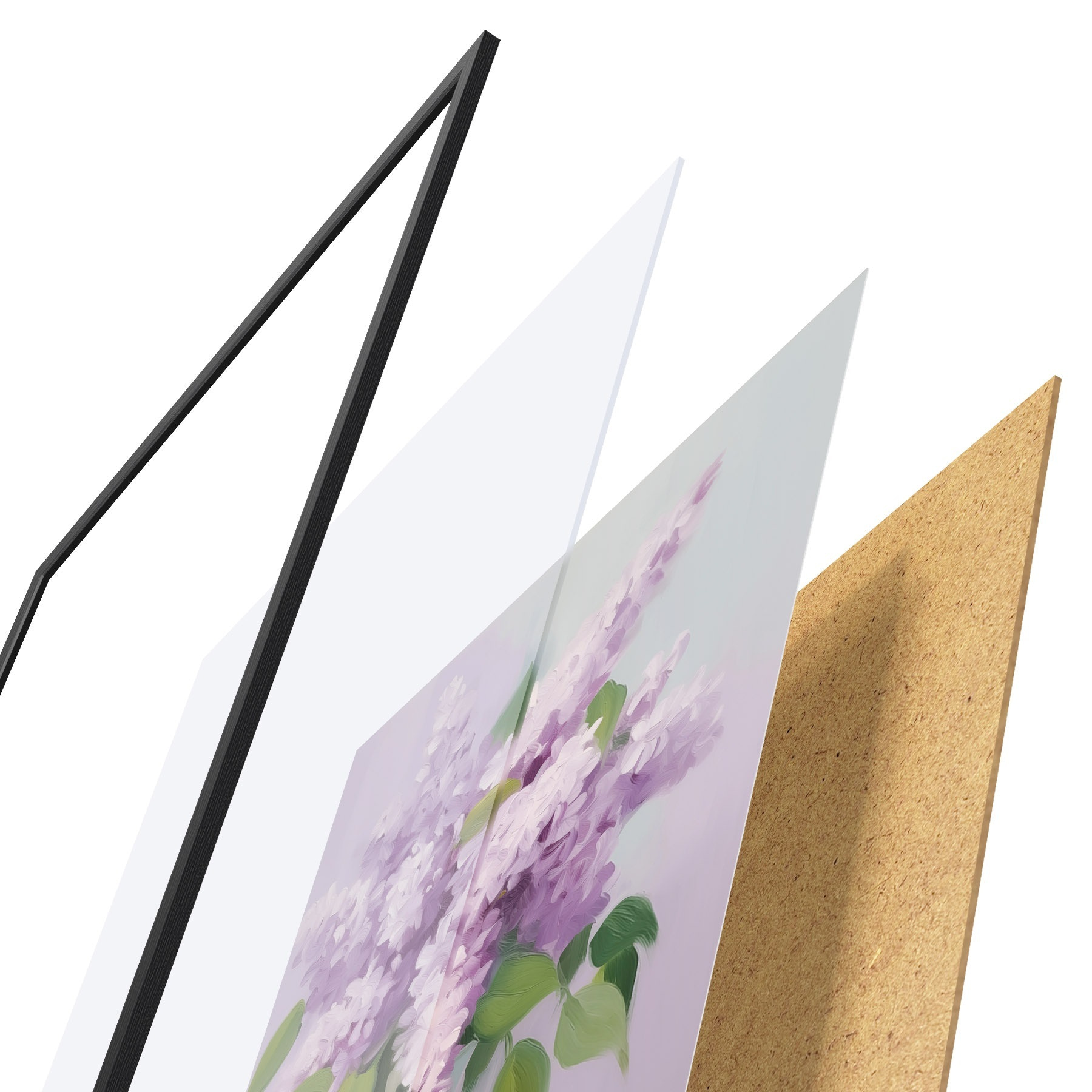 Plakatą sudaro rėmas, pleksiklas, atspausdintas vaizdas ir medžio drožlių plokštės pagrindas. Plakatą galima iš karto pakabinti ant sienos dėl kitoje pusėje esančių laikiklių.