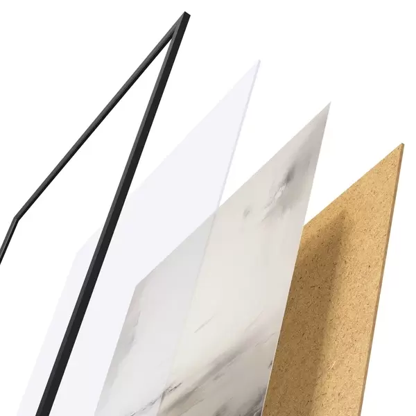 Plakatą sudaro rėmas, pleksiklas, atspausdintas vaizdas ir medžio drožlių plokštės pagrindas. Plakatą galima iš karto pakabinti ant sienos dėl kitoje pusėje esančių laikiklių.