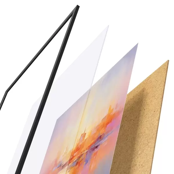 Plakatą sudaro rėmas, pleksiklas, atspausdintas vaizdas ir medžio drožlių plokštės pagrindas. Plakatą galima iš karto pakabinti ant sienos dėl kitoje pusėje esančių laikiklių.