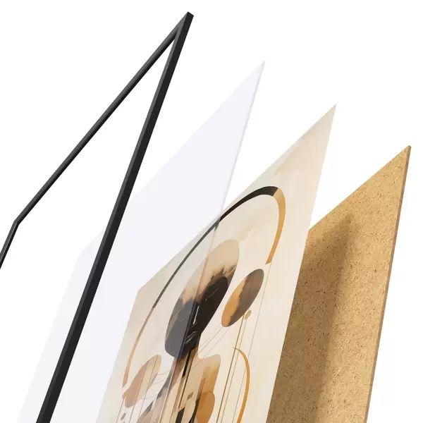 Plakatą sudaro rėmas, pleksiklas, atspausdintas vaizdas ir medžio drožlių plokštės pagrindas. Plakatą galima iš karto pakabinti ant sienos dėl kitoje pusėje esančių laikiklių.