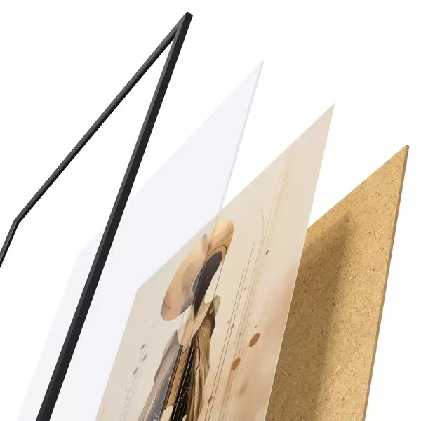 Plakatą sudaro rėmas, pleksiklas, atspausdintas vaizdas ir medžio drožlių plokštės pagrindas. Plakatą galima iš karto pakabinti ant sienos dėl kitoje pusėje esančių laikiklių.