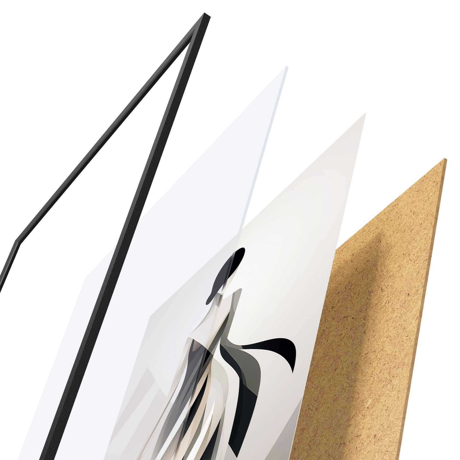 Plakatą sudaro rėmas, pleksiklas, atspausdintas vaizdas ir medžio drožlių plokštės pagrindas. Plakatą galima iš karto pakabinti ant sienos dėl kitoje pusėje esančių laikiklių.