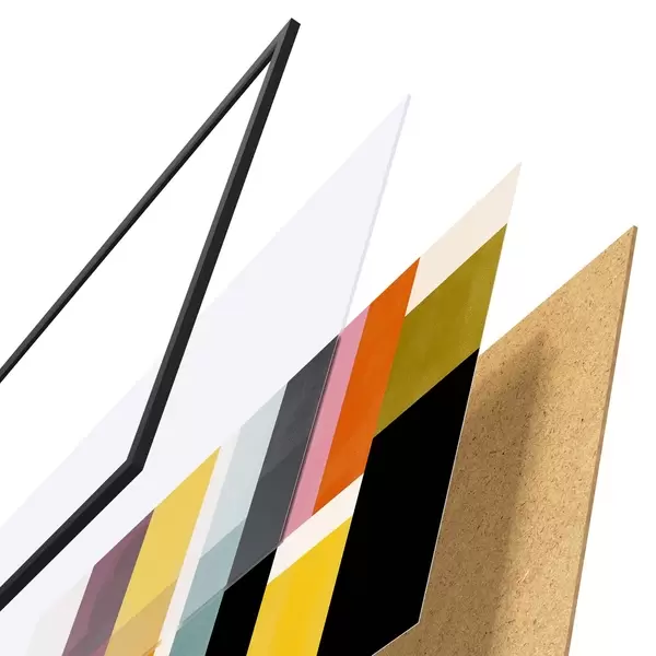 Plakatą sudaro rėmas, pleksiklas, atspausdintas vaizdas ir medžio drožlių plokštės pagrindas. Plakatą galima iš karto pakabinti ant sienos dėl kitoje pusėje esančių laikiklių.