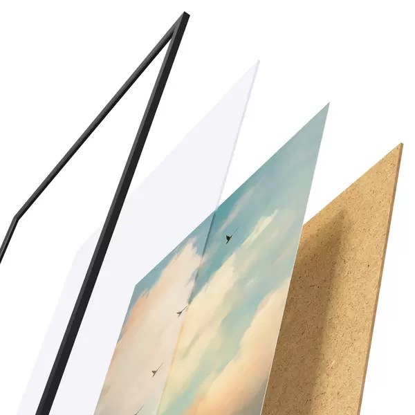 Plakatą sudaro rėmas, pleksiklas, atspausdintas vaizdas ir medžio drožlių plokštės pagrindas. Plakatą galima iš karto pakabinti ant sienos dėl kitoje pusėje esančių laikiklių.