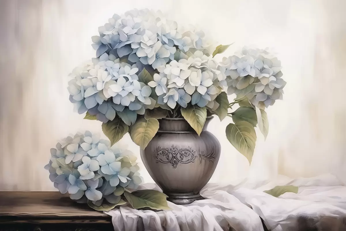 Plakatas Hortenzijos gėlės vazoje f44771