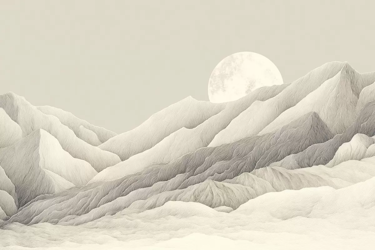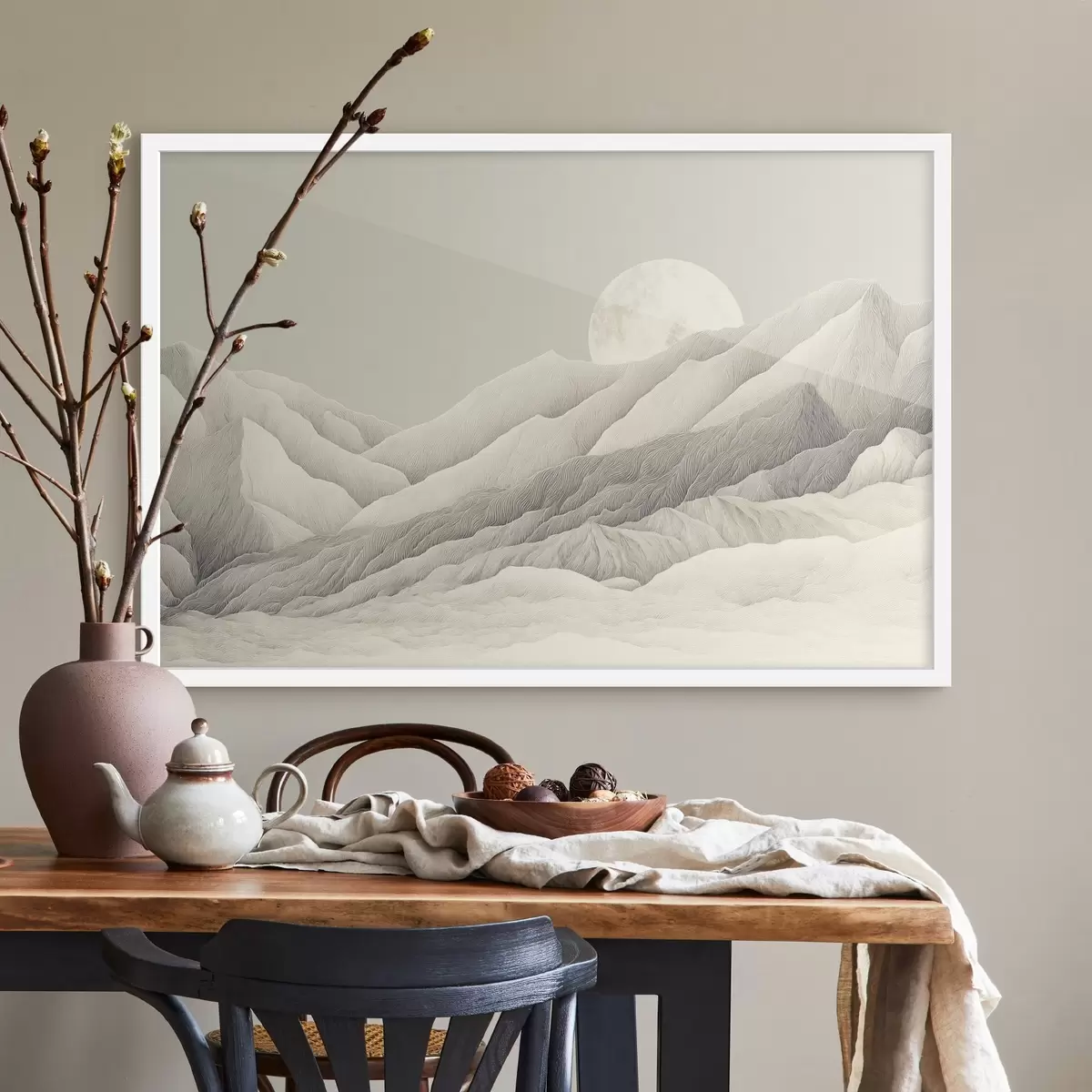 Plakatas Kalnai su mėnuliu, detalus piešinys f44788