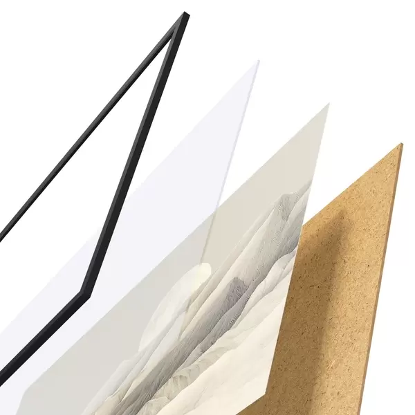 Plakatą sudaro rėmas, pleksiklas, atspausdintas vaizdas ir medžio drožlių plokštės pagrindas. Plakatą galima iš karto pakabinti ant sienos dėl kitoje pusėje esančių laikiklių.