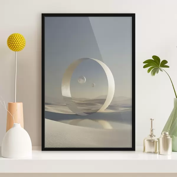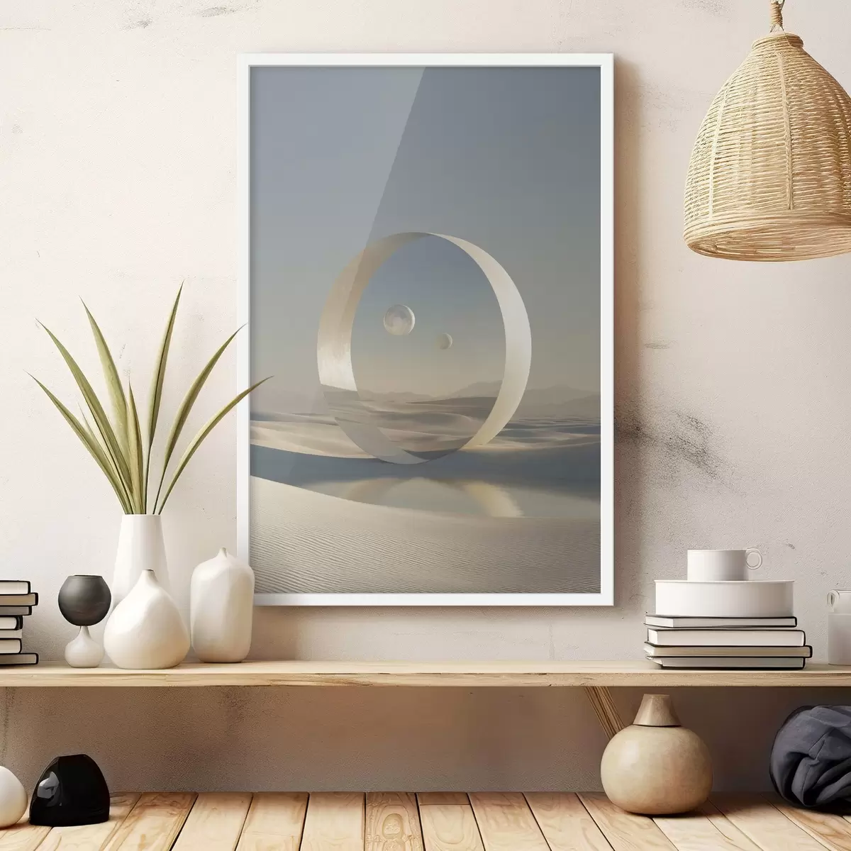 Plakatas Futuristinis kraštovaizdis su kopomis ir planetomis f44791