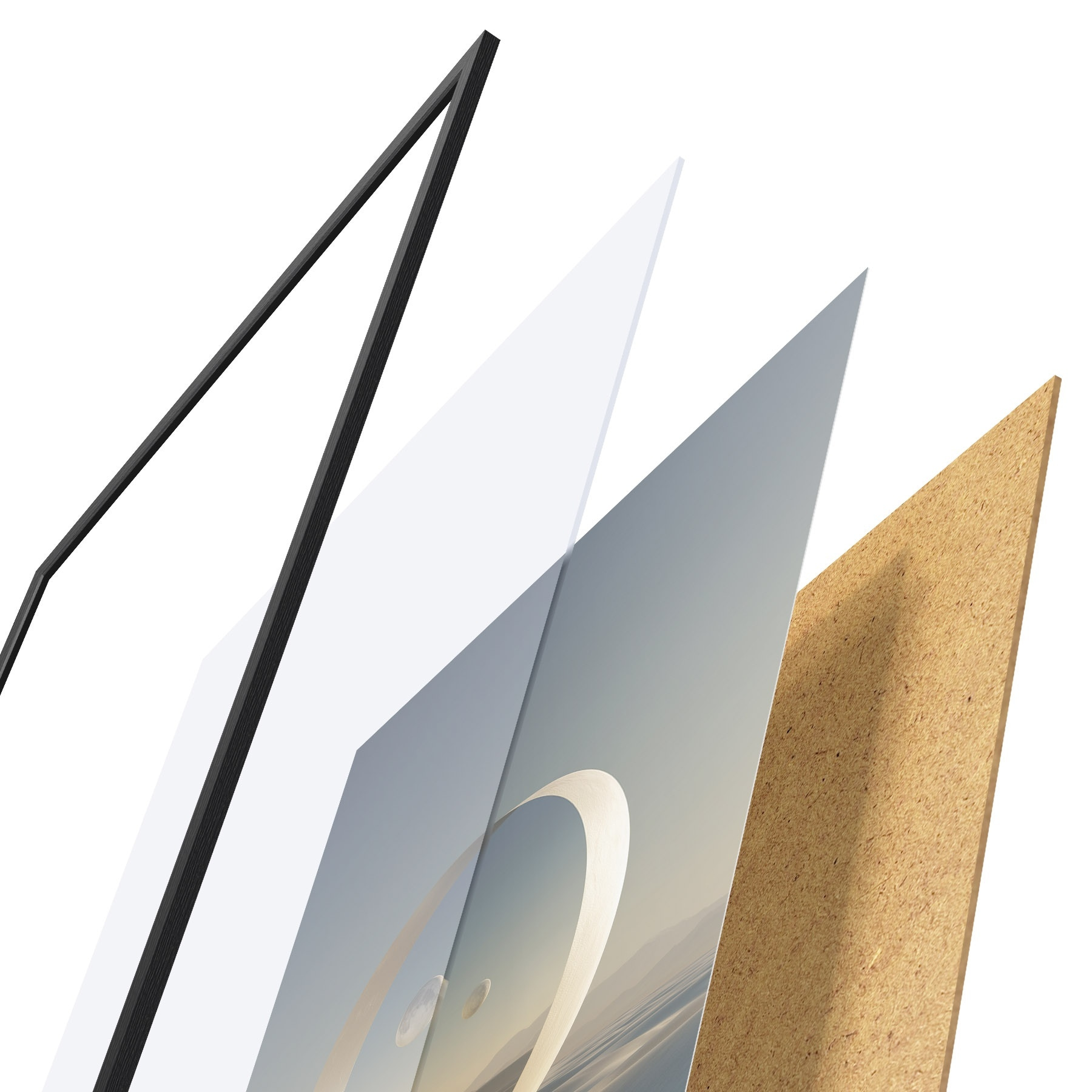 Plakatą sudaro rėmas, pleksiklas, atspausdintas vaizdas ir medžio drožlių plokštės pagrindas. Plakatą galima iš karto pakabinti ant sienos dėl kitoje pusėje esančių laikiklių.