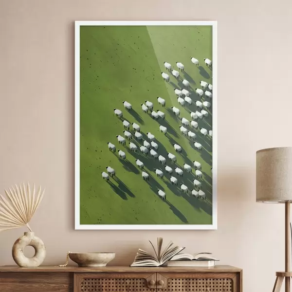 Plakatas Žalias laukas su avių banda, abstrakcija, vaizdas iš oro Ne f44793