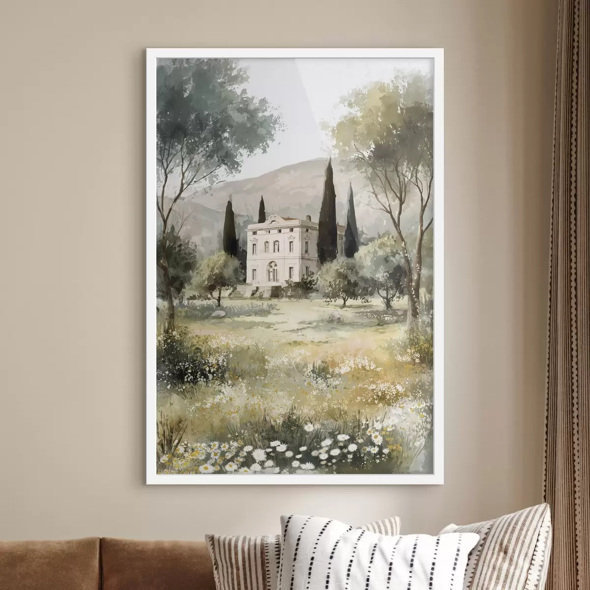 Plakatas Viduržemio jūros kaimas su baltu namu sodo apsuptyje Ne f44796