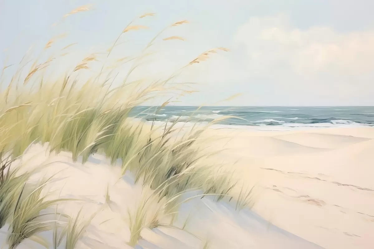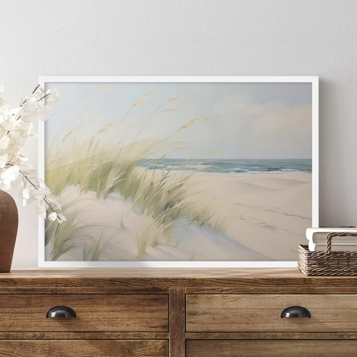 Plakatas Jūros pakrantė su smėliu ir žole f44806