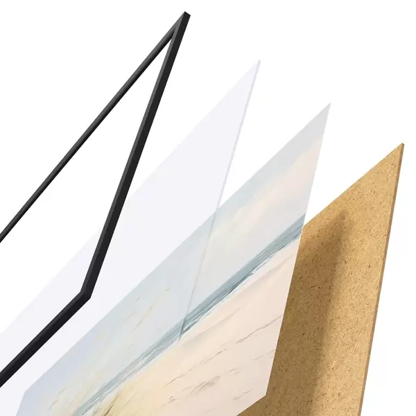 Plakatą sudaro rėmas, pleksiklas, atspausdintas vaizdas ir medžio drožlių plokštės pagrindas. Plakatą galima iš karto pakabinti ant sienos dėl kitoje pusėje esančių laikiklių.