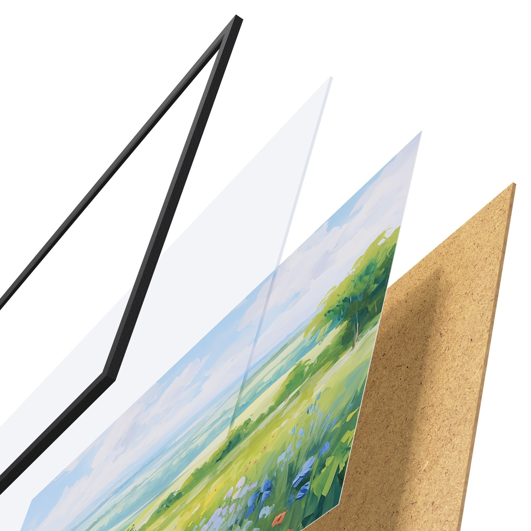Plakatą sudaro rėmas, pleksiklas, atspausdintas vaizdas ir medžio drožlių plokštės pagrindas. Plakatą galima iš karto pakabinti ant sienos dėl kitoje pusėje esančių laikiklių.
