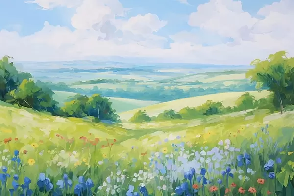 Plakatas Žydinti kalva su vasaros vaizdu Ne f44813