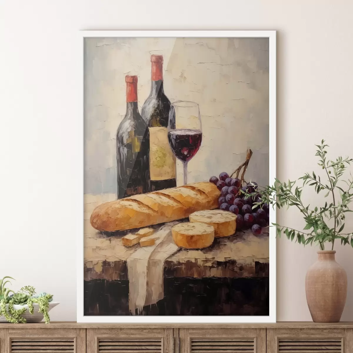 Plakatas Vynas, bagetė ir vynuogės f44815