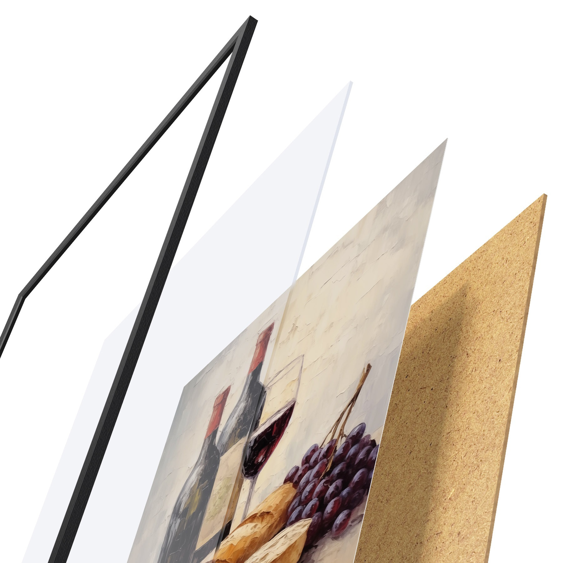 Plakatą sudaro rėmas, pleksiklas, atspausdintas vaizdas ir medžio drožlių plokštės pagrindas. Plakatą galima iš karto pakabinti ant sienos dėl kitoje pusėje esančių laikiklių.
