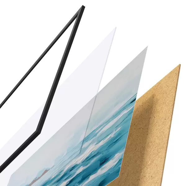 Plakatą sudaro rėmas, pleksiklas, atspausdintas vaizdas ir medžio drožlių plokštės pagrindas. Plakatą galima iš karto pakabinti ant sienos dėl kitoje pusėje esančių laikiklių.
