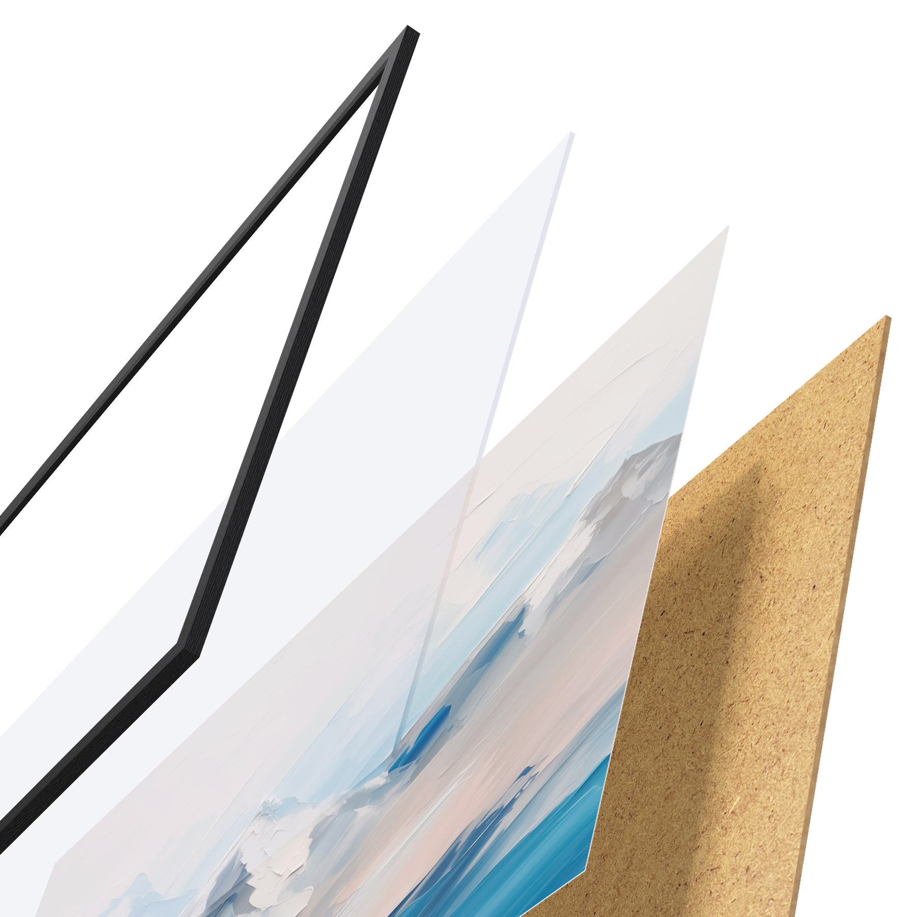Plakatą sudaro rėmas, pleksiklas, atspausdintas vaizdas ir medžio drožlių plokštės pagrindas. Plakatą galima iš karto pakabinti ant sienos dėl kitoje pusėje esančių laikiklių.