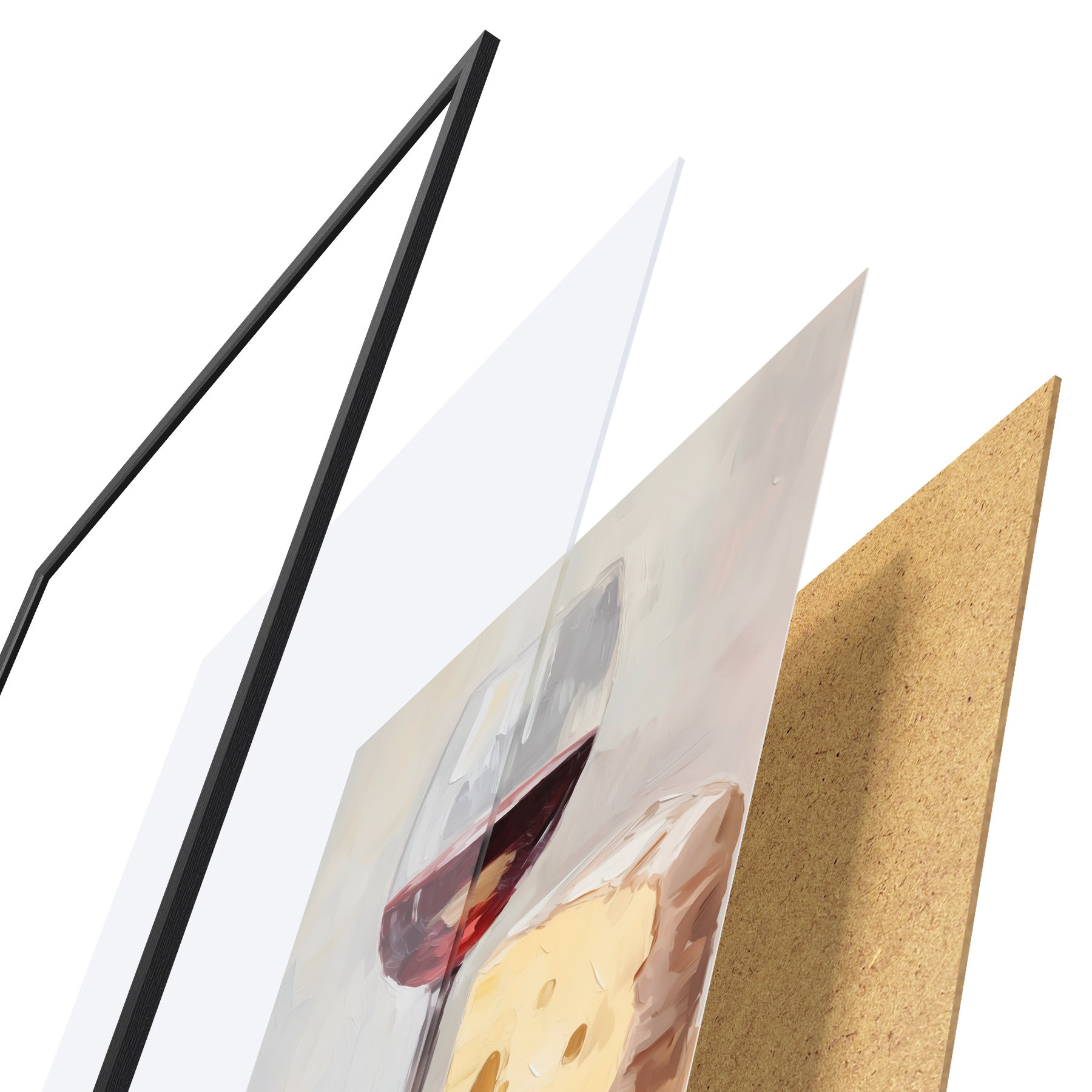 Plakatą sudaro rėmas, pleksiklas, atspausdintas vaizdas ir medžio drožlių plokštės pagrindas. Plakatą galima iš karto pakabinti ant sienos dėl kitoje pusėje esančių laikiklių.