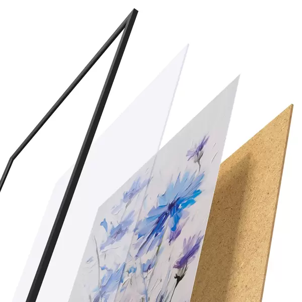 Plakatą sudaro rėmas, pleksiklas, atspausdintas vaizdas ir medžio drožlių plokštės pagrindas. Plakatą galima iš karto pakabinti ant sienos dėl kitoje pusėje esančių laikiklių.