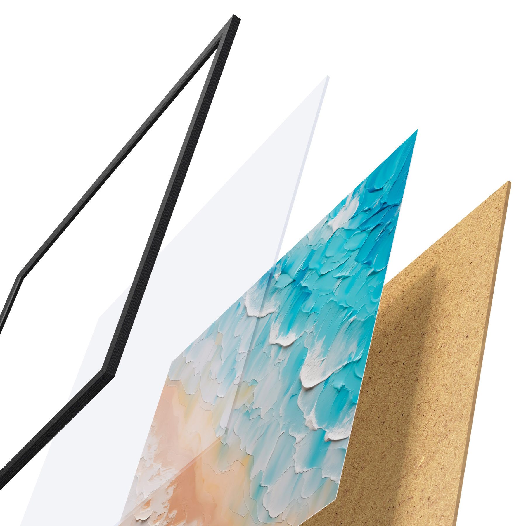 Plakatą sudaro rėmas, pleksiklas, atspausdintas vaizdas ir medžio drožlių plokštės pagrindas. Plakatą galima iš karto pakabinti ant sienos dėl kitoje pusėje esančių laikiklių.