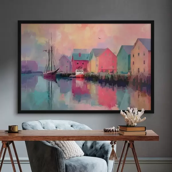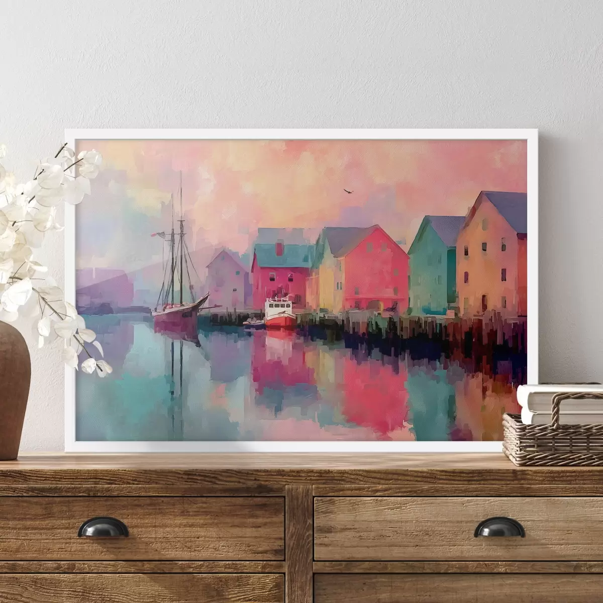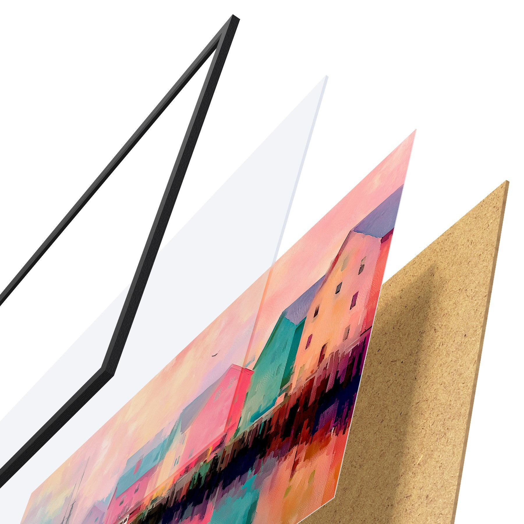 Plakatas Spalvingi nameliai prie vandens teptuko brūkštelėjimo stiliumi f44837