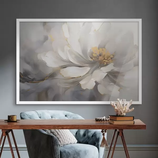 Plakatas Balta gėlė su abstraktaus stiliaus akcentais f44838