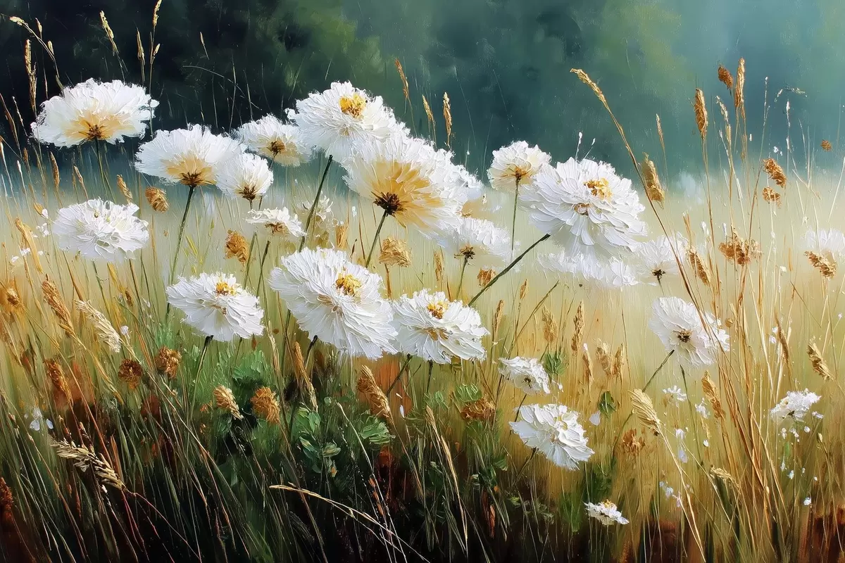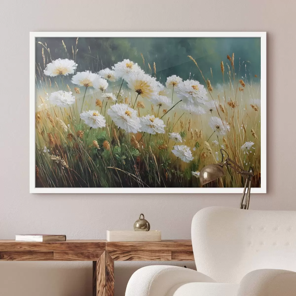 Plakatas Baltos gėlės pievoje aliejiniu stiliumi f44842