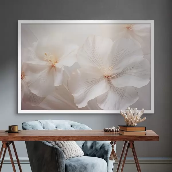 Plakatas Subtilūs balti žiedlapiai su švelniais pastelinių spalvų žiedais ir minkštais centrais sukuria svajingą ir nežemišką gėlių meną Ne f44858