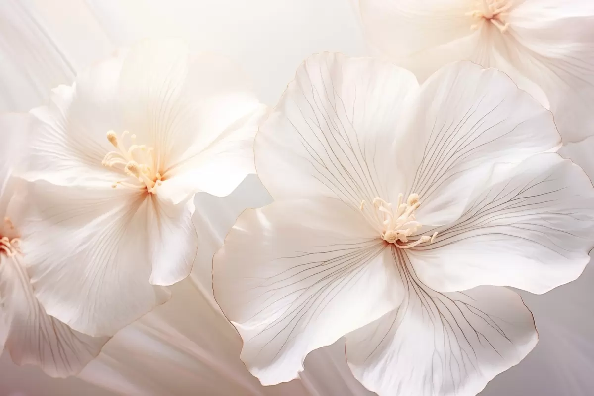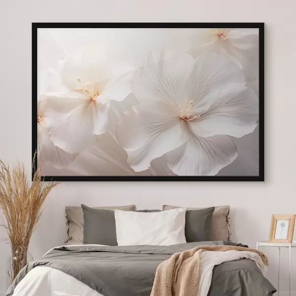 Plakatas Subtilūs balti žiedlapiai su švelniais pastelinių spalvų žiedais ir minkštais centrais sukuria svajingą ir nežemišką gėlių meną Ne f44858
