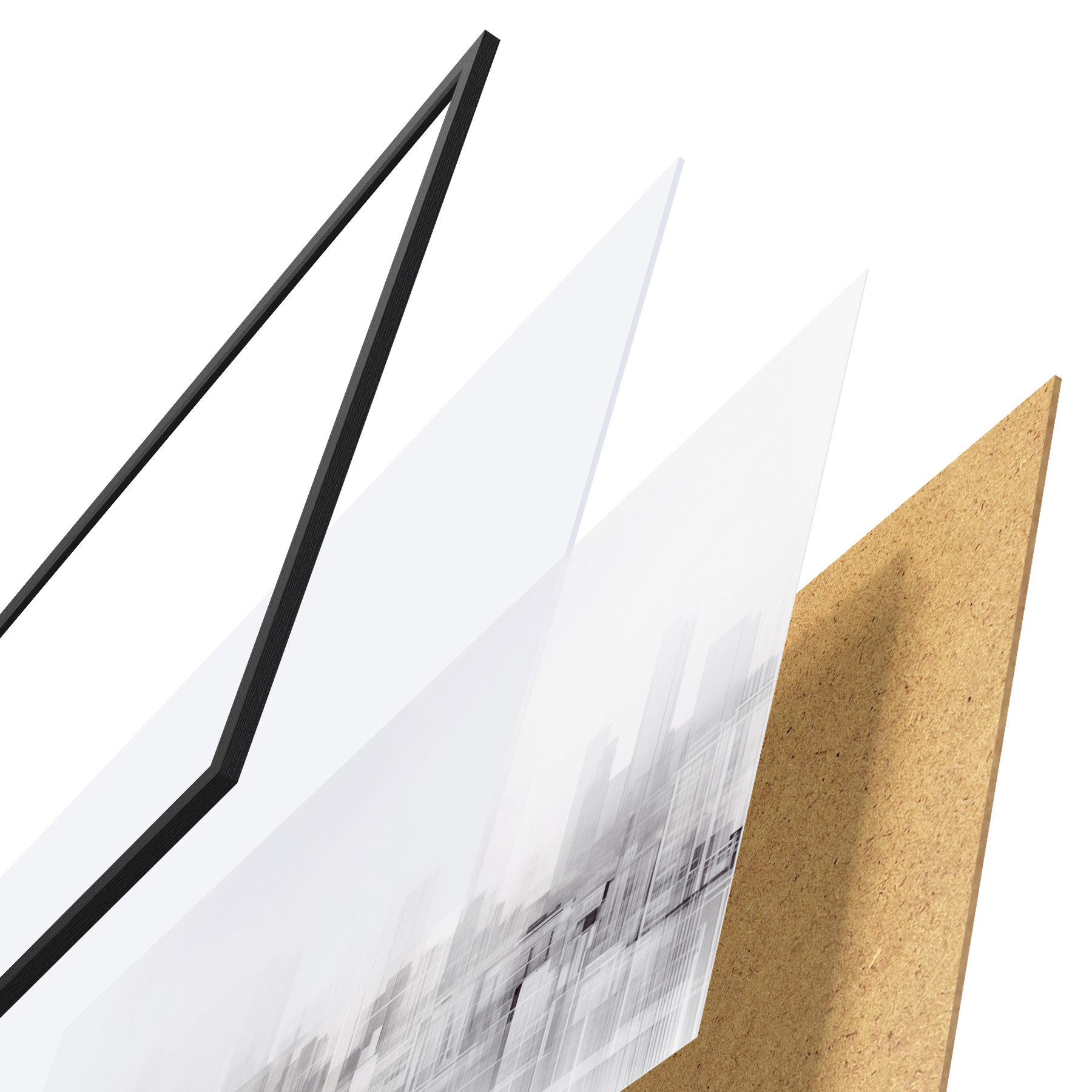 Plakatą sudaro rėmas, pleksiklas, atspausdintas vaizdas ir medžio drožlių plokštės pagrindas. Plakatą galima iš karto pakabinti ant sienos dėl kitoje pusėje esančių laikiklių.
