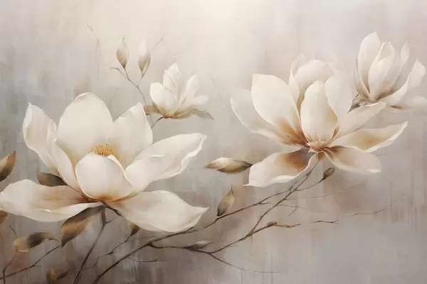Plakatas Tekstūruotos senovinės baltos magnolijos gėlės ant šakų šviesiai rudame fone f44869
