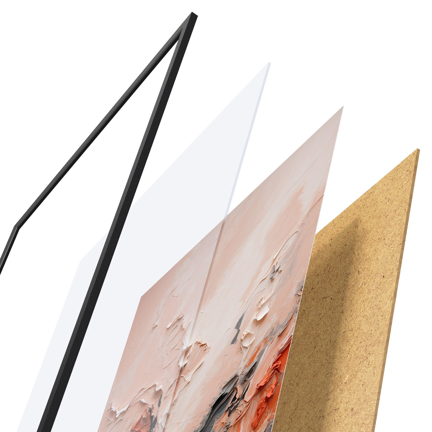 Plakatą sudaro rėmas, pleksiklas, atspausdintas vaizdas ir medžio drožlių plokštės pagrindas. Plakatą galima iš karto pakabinti ant sienos dėl kitoje pusėje esančių laikiklių.