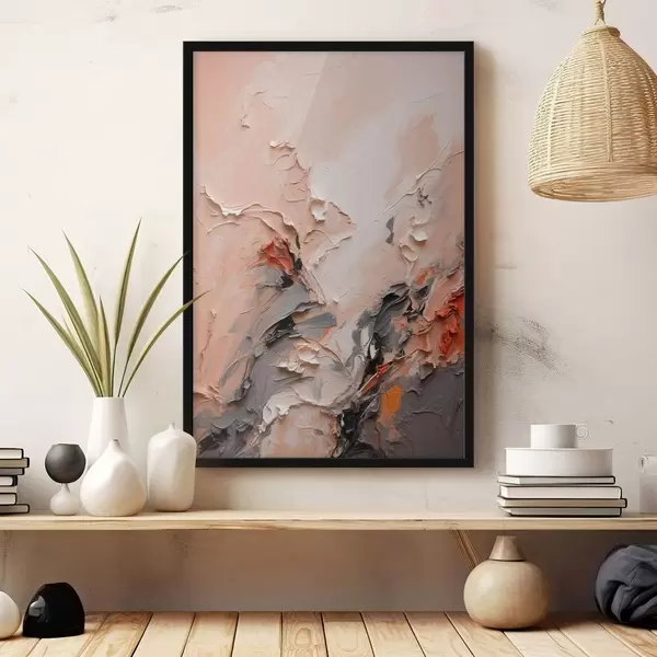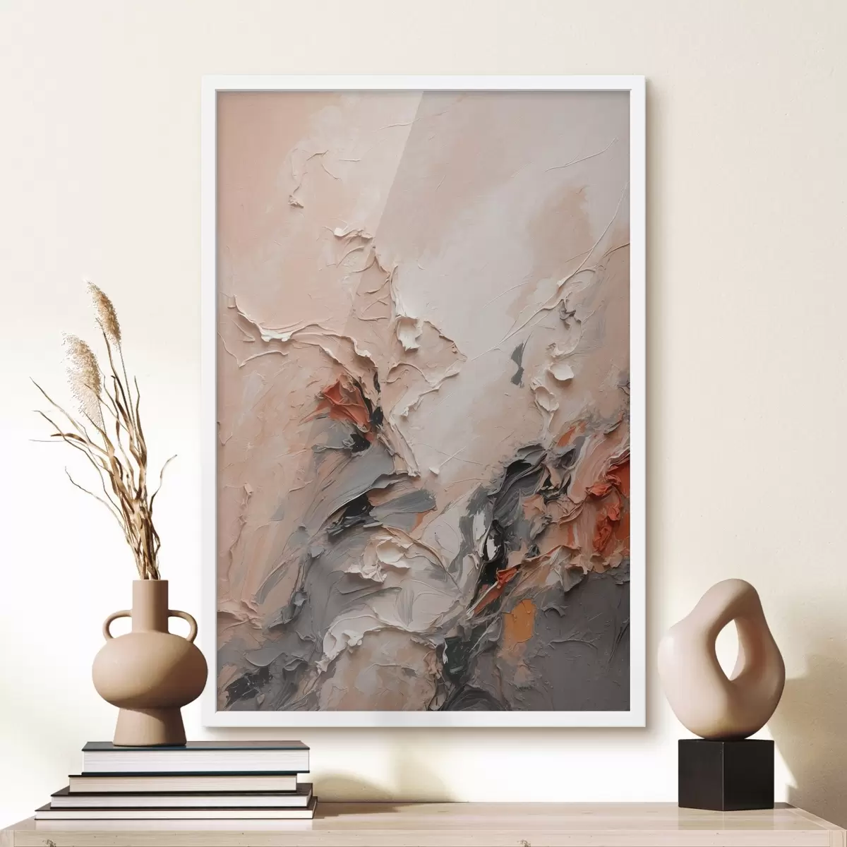 Plakatas Persikinės pilkos spalvos abstrakcija su tekstūriniais potėpiais f44873