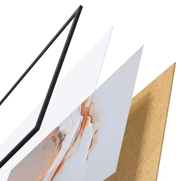 Plakatą sudaro rėmas, pleksiklas, atspausdintas vaizdas ir medžio drožlių plokštės pagrindas. Plakatą galima iš karto pakabinti ant sienos dėl kitoje pusėje esančių laikiklių.
