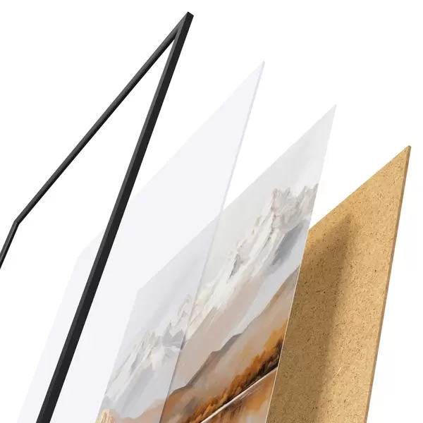 Plakatą sudaro rėmas, pleksiklas, atspausdintas vaizdas ir medžio drožlių plokštės pagrindas. Plakatą galima iš karto pakabinti ant sienos dėl kitoje pusėje esančių laikiklių.