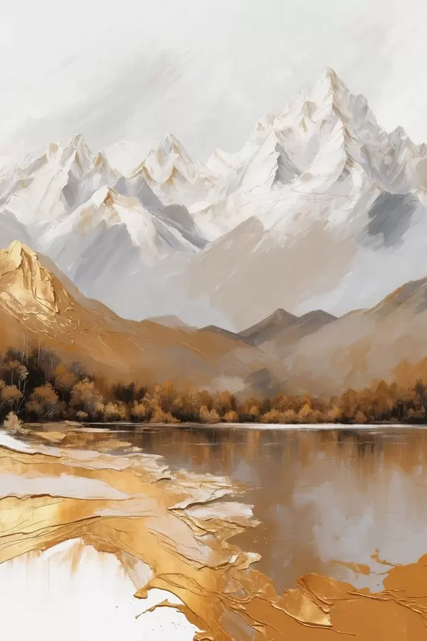 Plakatas Kalnų kraštovaizdis su šiltų spalvų ežeru f44877