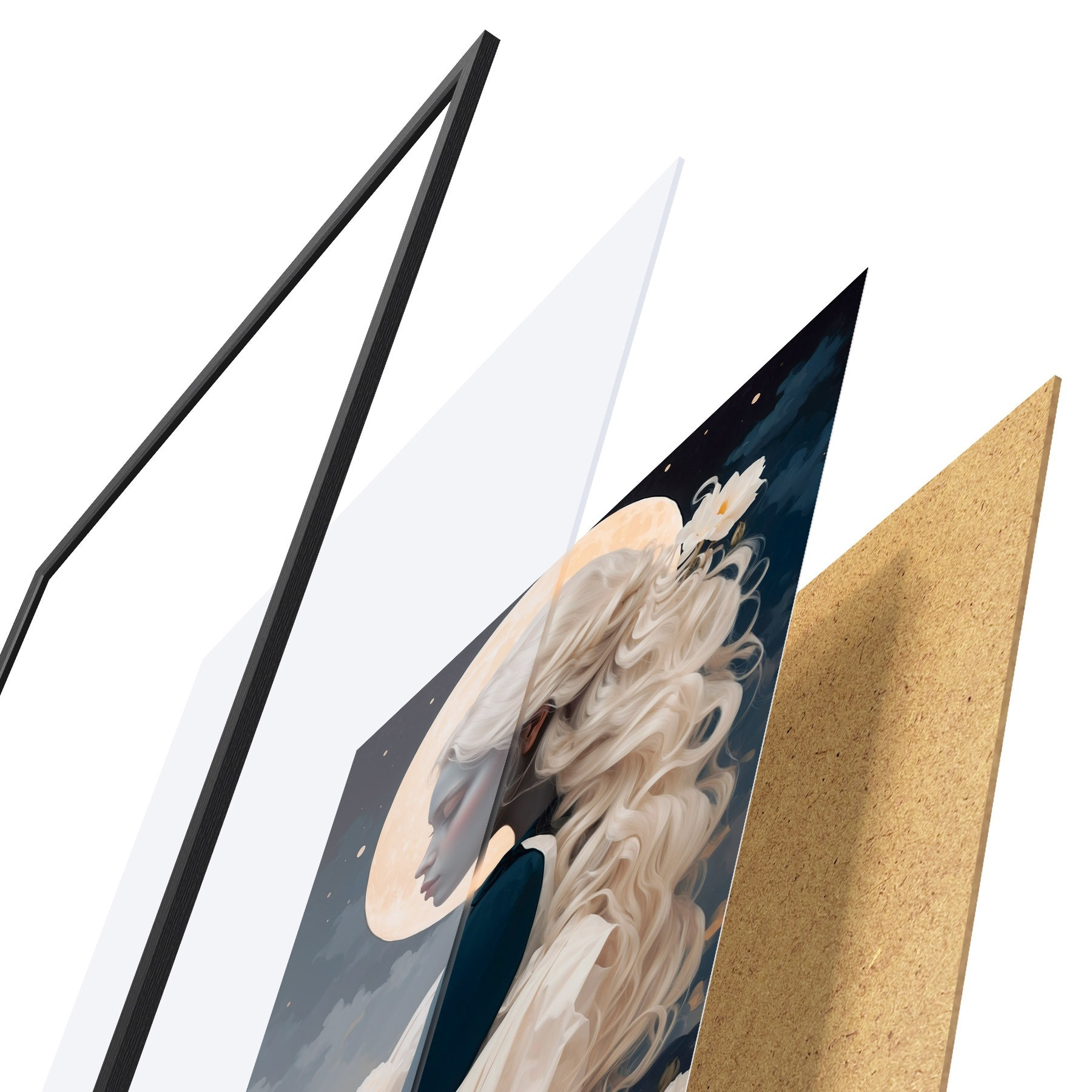 Plakatą sudaro rėmas, pleksiklas, atspausdintas vaizdas ir medžio drožlių plokštės pagrindas. Plakatą galima iš karto pakabinti ant sienos dėl kitoje pusėje esančių laikiklių.