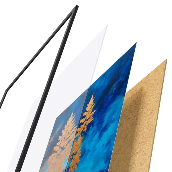 Plakatą sudaro rėmas, pleksiklas, atspausdintas vaizdas ir medžio drožlių plokštės pagrindas. Plakatą galima iš karto pakabinti ant sienos dėl kitoje pusėje esančių laikiklių.