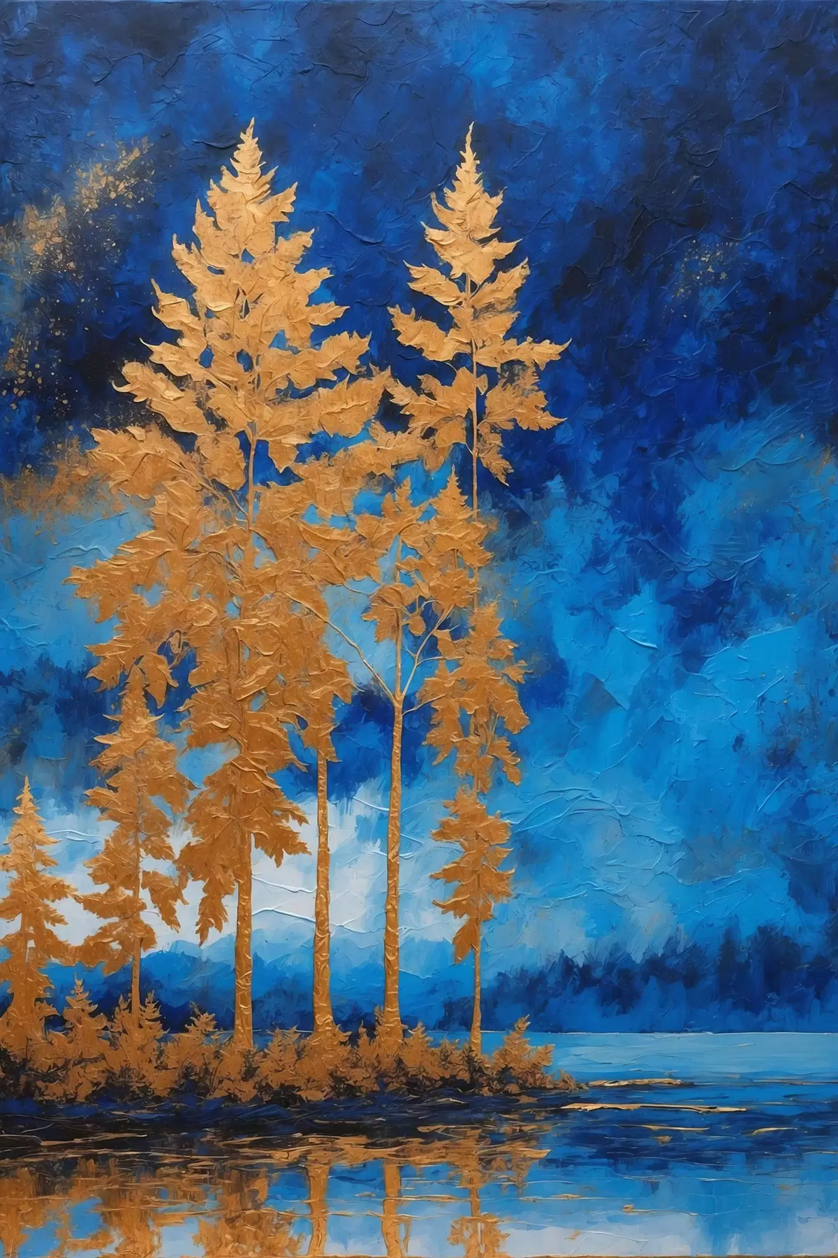 Plakatas Medžiai nakties dangaus fone mėlynais tonais f44888