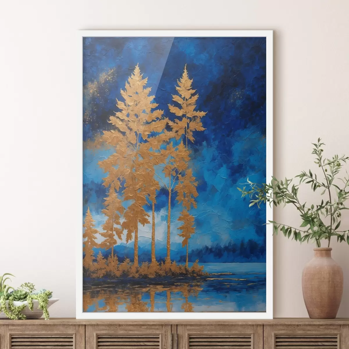 Plakatas Medžiai nakties dangaus fone mėlynais tonais Ne f44888